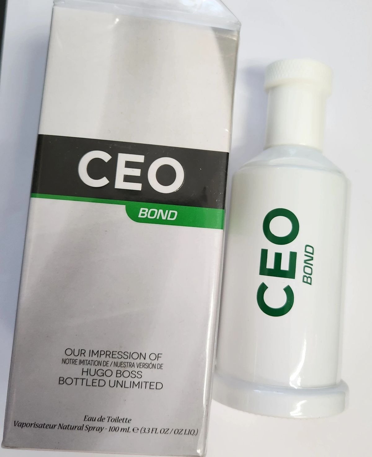 Introducing CEO Bond Eau de Toilette, a sophisticated blend of notes inspired by Hugo Boss Bottled Unlimited. This 100 mL (3.3 FL OZ LIQ) fragrance exudes confidence and elegance, perfect for the modern man.